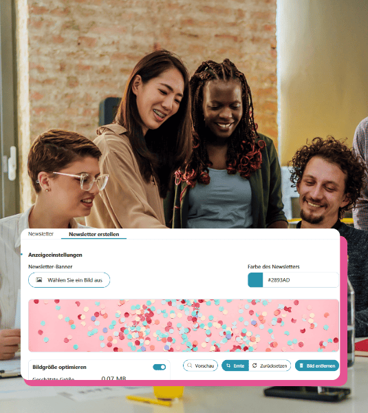 Nutzen Sie das Newsletter-Modul, um Inhalte Ihres Intranets gezielt hervorzuheben, priorisieren und zu verbreiten. Planen Sie Kampagnen, die perfekt zu Ihren Kommunikationsthemen passen und so interne und externe Zielgruppen gleichermaßen ansprechen.