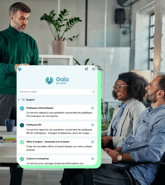 Le Knowledge Management System de Powell permet aux collaborateurs de poser leurs questions en langage naturel, de trouver des réponses instantanément et d’accéder aux ressources pertinentes en toute autonomie.