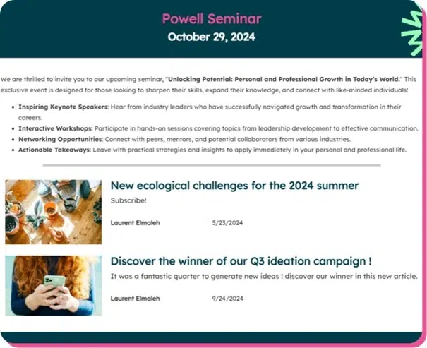 At Powell, we know that internal newsletters work best when they’re part of a seamless digital experience and not just another email lost in the inbox. That’s why we help companies create dynamic, personalized newsletters embedded right into the digital workplace. With Powell Intranet, you can:
