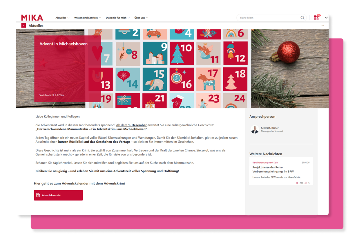 Diakonie Michaelshoven e.V. is a nonprofit organization based in Germany with around 2,800 employees. As a large social services provider, clear and engaging communication is essential to connect teams, share knowledge, and support daily work across diverse roles. With their MIKA intranet built on Powell, the organization continuously looks for innovative ways to inform and inspire employees. Beyond simply publishing content, the goal is to create moments of engagement that bring people together and make digital tools meaningful in everyday work.
