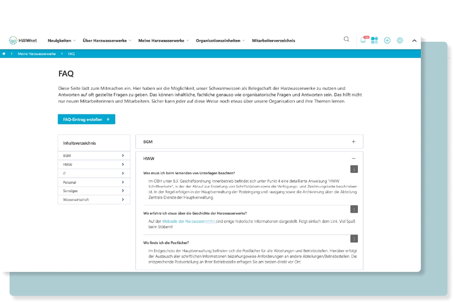 With Powell, Harzwasserwerke launched HWWnet, a social intranet built around three pillars: structure, interaction, and community.