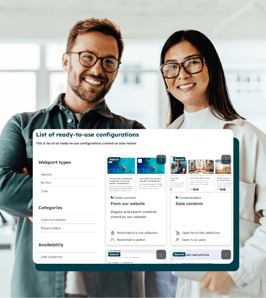 Get a quick return on your organization’s intranet investment with a ready-to-use, easy-to-deploy space and a wide selection of templates, sites, and pages.